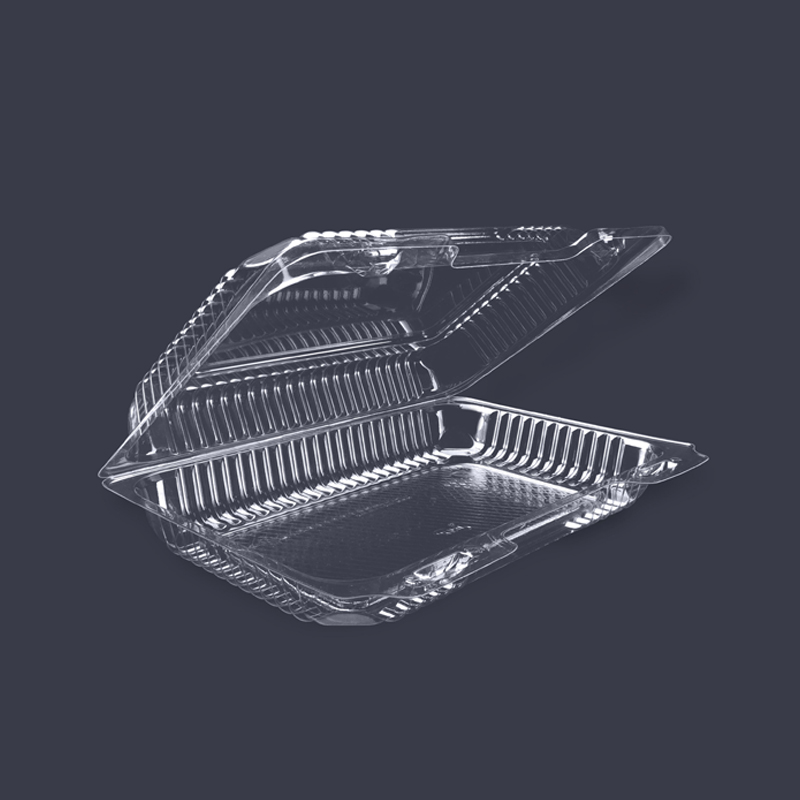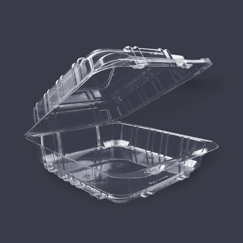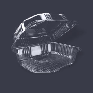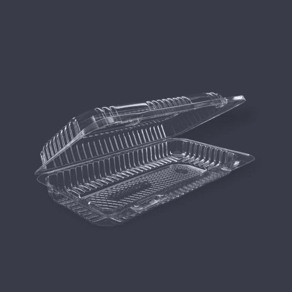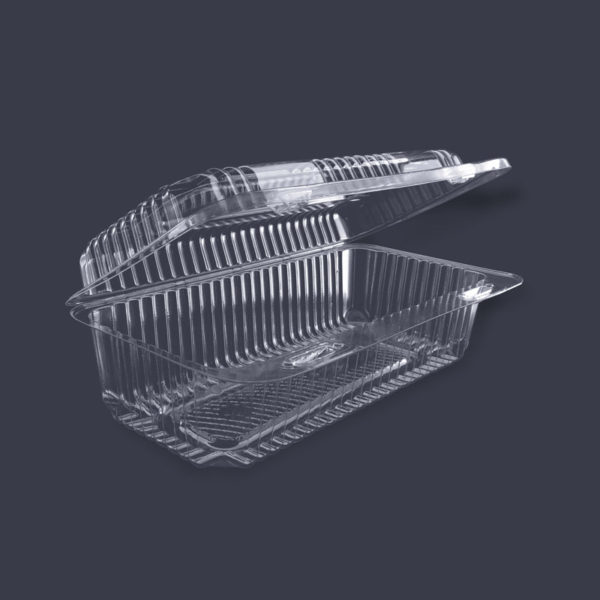 CONTENEDOR RECTANGULAR DESECHABLE 20X18X7CM TIPO BISAGRA/ALMEJA TRANSPARENTE (PS) Y (PET) (2018-43)