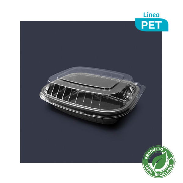 CONTENEDOR RECTANGULAR DESECHABLE 16X13X5CM BASE NEGRA Y DOMO TRANSPARENTE PARA ENSALADAS INIX (FH1613-23N)