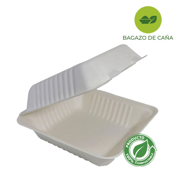 CONTENEDOR COMPOSTABLE PULPA 9X9 RT C/50